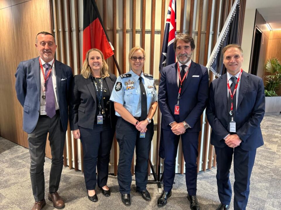 MELBOURNE. Una delegazione della Polizia di Stato, guidata dal Prefetto Francesco Messina, Direttore Centrale Anticrimine, accompagnato dal Direttore del Servizio Centrale Operativo, Dott. Fausto Lamparelli, e dall’Esperto per la Sicurezza presso l’Ambasciata d’Italia a Canberra, dott. Mario Argenio, si è recata a Melbourne, in Australia, per incontrare i vertici dell’AFP (Australian Federal Police) per lo Stato del Victoria e per partecipare alla “Echo Task Force Gangs Conference”, con oltre 300 delegati delle Forze di Polizia statali e federali australiane, americane, inglesi e neozelandesi.