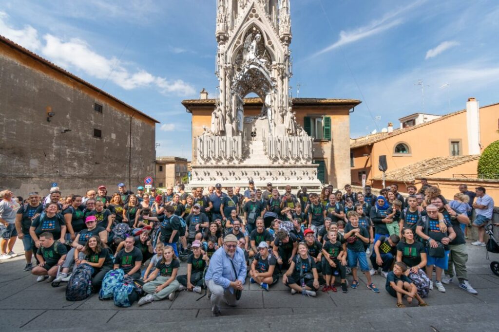 Dopo la celebrazione della Santa Messa presso la Basilica di San Francesco, dove il gruppo ha ricevuto la benedizione del Vescovo di Viterbo, Monsignor Orazio Francesco Piazza, la carovana si è diretta verso il Santuario di Santa Rosa per ammirare la “macchina” protagonista dei festeggiamenti appena trascorsi in onore della patrona della città. Ad aspettarli, due equipaggi della Polizia di Stato, pronti a scortarli fuori città per la prossima tappa.