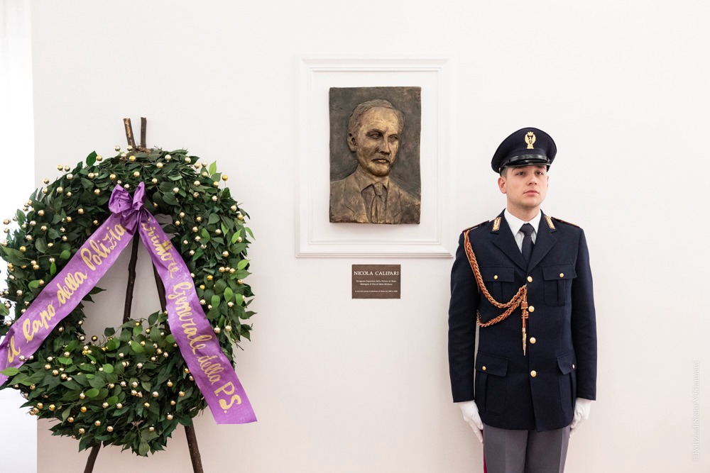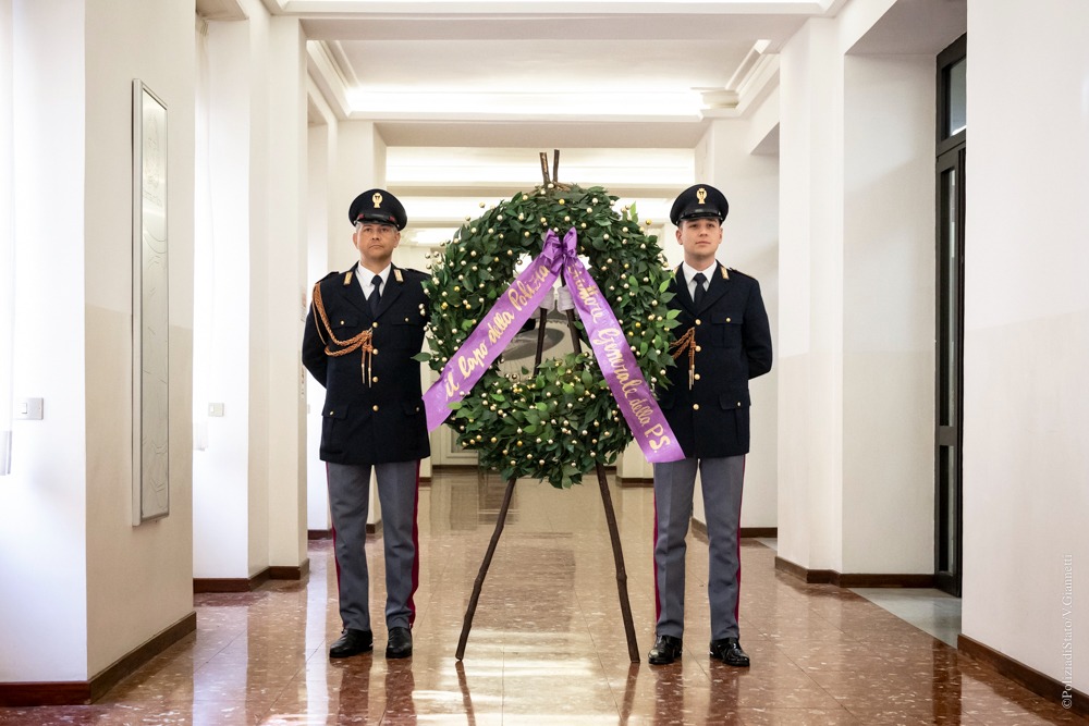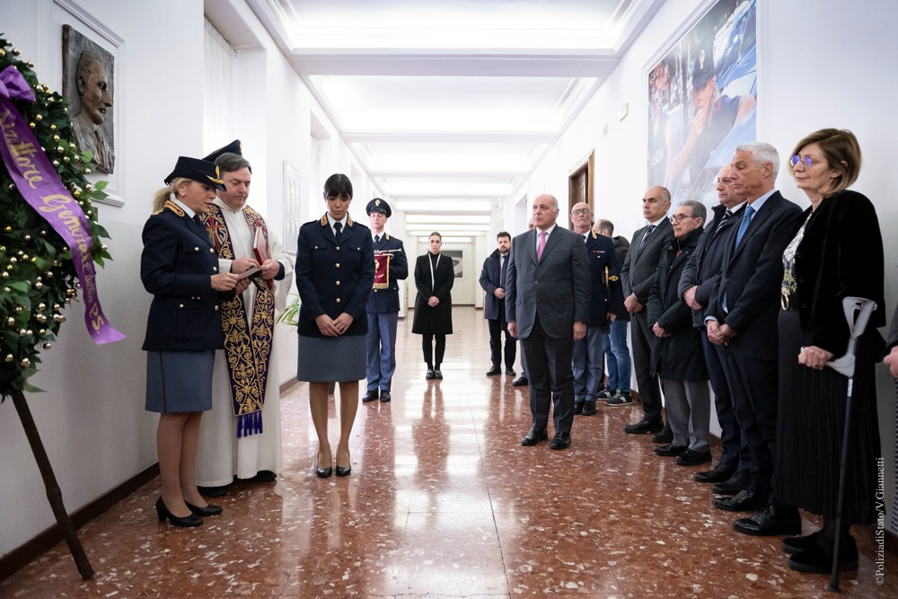 In rappresentanza del capo della Polizia – Direttore Generale della Pubblica Sicurezza, Prefetto Pisani, il vice Direttore Generale della Pubblica Sicurezza con funzioni vicarie, Prefetto Vittorio Rizzi, ha deposto una corona di alloro davanti al bassorilievo in bronzo che ritrae l’eroico poliziotto.