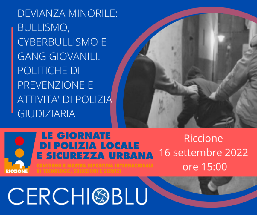 RICCIONE. Nei prossimi giorni, il Cerchio Blu, Associazione che si occupa della formazione per i corpi di Polizia e la protezione civile, parteciperà alla 41° edizione de Le Giornate di Polizia Locale e Sicurezza Urbana, organizzata dal Gruppo Maggioli, la manifestazione più importante per l’aggiornamento e la crescita professionale degli addetti ai lavori con un panel dedicato a “Devianza minorile: bullismo, cyberbullismo