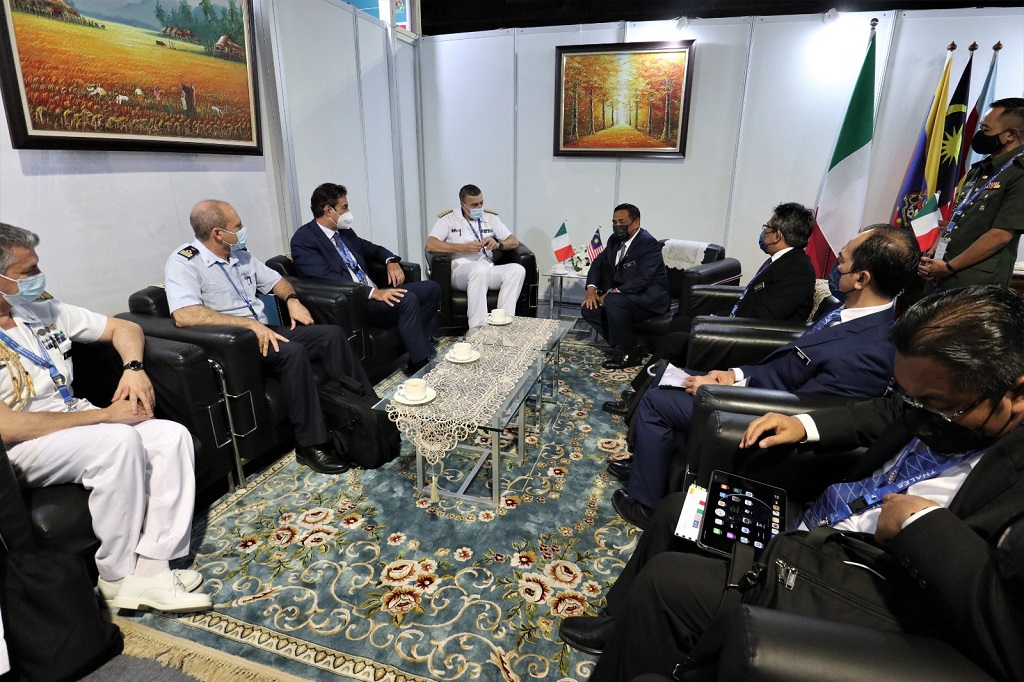 Il salone ha anche permesso lo svolgimento di importanti incontri istituzionali con le massime autorità civili e militari malesi, come quelli che l’Ammiraglio Giacomin ha avuto nel corso dei giorni di partecipazione, quali il Ministro della Difesa, YB Dato’ Seri Hishammuddin bin Tun Hussein, il Ministro degli Affari Interni, YB Dato’ Seri Hamzah Bin Zainudin, il Segretario Generale e Direttore Nazionale degli Armamenti, il Capo delle Forze Armate, il Capo della Marina, utili ad approfondire alcuni temi di mutuo interesse e consolidare il rapporto di crescente amicizia e vicinanza tra i due paesi.