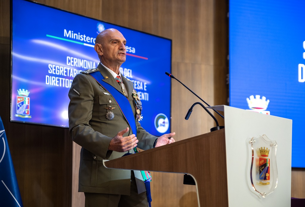 ROMA. Cerimonia , oggi a Roma a Palazzo Guidoni, di saluto del Generale di Corpo d’Armata Luciano Portolano che ha lasciato la carica di Segretario Generale della Difesa e Direttore Nazionale degli Armamenti, assunta nell’ottobre 2021.