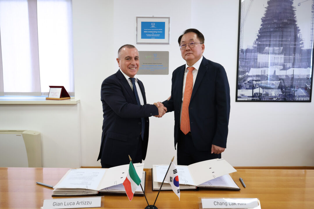 ROMA. Nei giorni scorsi, Gian Luca Artizzu, Amministratore Delegato di Sogin, e Chang Lak Kim, Executive Dean di Kings (Kepco International Nuclear Graduate School) hanno firmato un Memorandum of Understanding (MoU) volto allo scambio di informazioni ed esperienze e allo sviluppo di programmi formativi in campo nucleare.