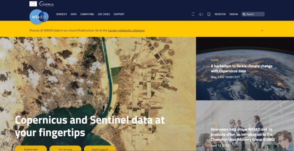 La piattaforma WEkEO è un’ importante porta d’accesso per sfruttare la potenza dei principali dati spaziali ambientali. Non solo fornisce un accesso libero e gratuito ai dati della costellazione Sentinel, nonché ai dati e ai prodotti dei quattro servizi Copernicus relativi ai dati ambientali (marini, atmosferici, climatici e terrestri), fornisce inoltre un accesso gratuito (e a pagamento) a potenti ambienti di elaborazione virtuale che permettono agli utenti di trasformare i dati. Imprenditori, ricercatori o cittadini privati interessati possono utilizzare la piattaforma WEkEO per sviluppare un’applicazione a valore aggiunto, sviluppare modelli e trasformare dati, o semplicemente esplorare i dati di origine spaziale di Copernicus e i dati derivati dalla tecnologia e dai modelli in situ.